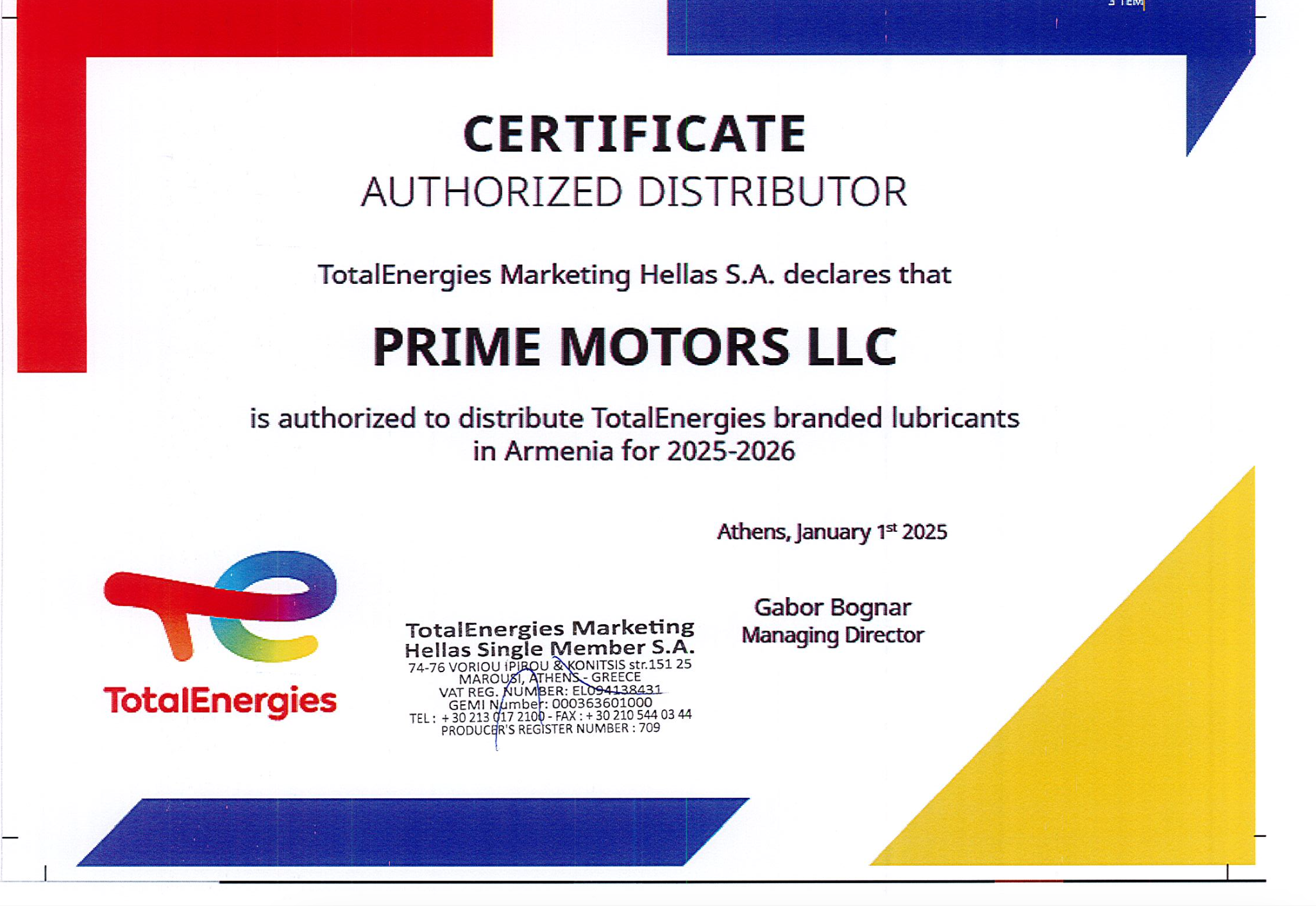 Ընկերությունը հանդիսանում է եվրոպական արտադրության պրեմիում դասի ավտոյուղերի, քսանյութերի, արդյունաբերական յուղերի, պահեստամասերի ներմուծմամբ, դրանց մանրամեծածախ վաճառքով, ինչպես նաև ավտոմեքենաների տեխսպասարկմամբ զբաղվող ընկերություն։ Ներկայացվող պորտֆելում առկա են յուղեր և քսանյութեր, որոնք նախատեսված են տարբեր ոլորտներում օգտագործման համար՝ սկսած շարժիչային յուղերից մինչև սննդի և տեքստիլ արտադրության համար նախատեսված յուղեր ու քսուքներ։ Լինելով Հայաստանում տվյալ ոլորտի առաջատար ընկերություններից մեկը՝ «Փռայմ Մոթորս»-ը հանդիսանում է մի շարք աշխարհահռչակ բրենդների պաշտոնական ներկայացուցիչը ՀՀ տարածքում, դրանք են՝ TotalEnergies, Mobil /ExxonMobil/, Cepsa, Brembo, Purflux, FRAM, TEXA, UFI Filters, Metelli։